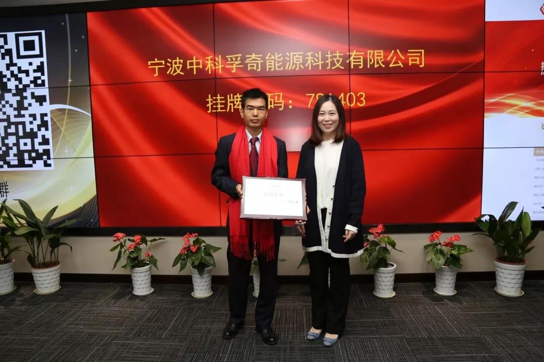 10月24日下午,寧波中科孚奇能源科技有限公司在寧波股權(quán)交易中心正式掛牌(掛牌代碼:781403)。左飛龍先生代表中科孚奇參加寧波股權(quán)交易中心掛牌儀式。  中科孚奇致力于電力儲